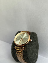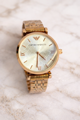 Add a touch of elegance to every moment with this stunning gold-tone wristwatch designed for modern women. Featuring a refined patterned dial with sleek hour markers and a polished stainless steel bracelet, this timepiece blends luxury with everyday wearability. The slim profile and smooth finish make it perfect for office wear, parties, and special occasions.